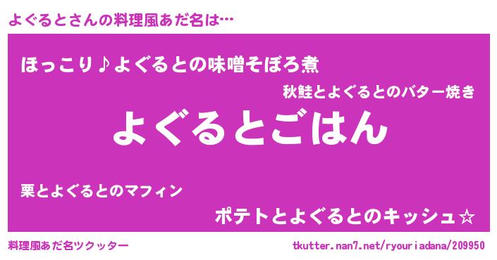 | 意味不明あだ名 | 『めかぶ科よぐると属』『自称よぐると』 |