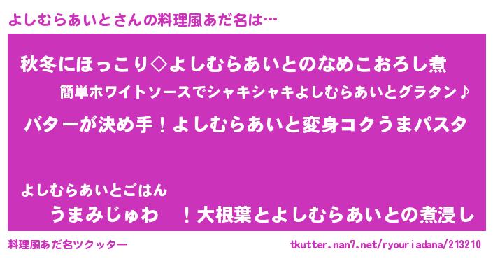 | 男性向けラノベタイトル風あだ名 | 『ノーゲーム・ノーヨシムラアイト』 |