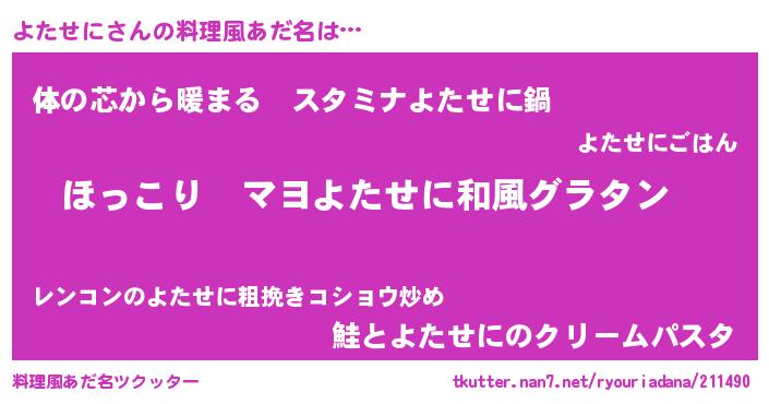 | 意味不明あだ名 | 『住所不定無職よたせに(86歳)』 |