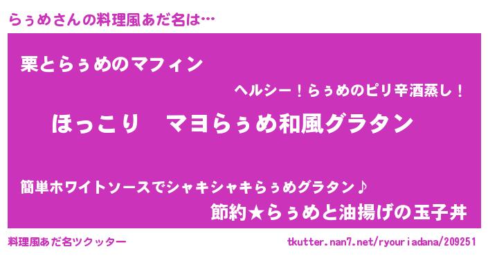 | 男性向けラノベタイトル風あだ名 | 『この素晴らしい世界にらぅめを!』 |