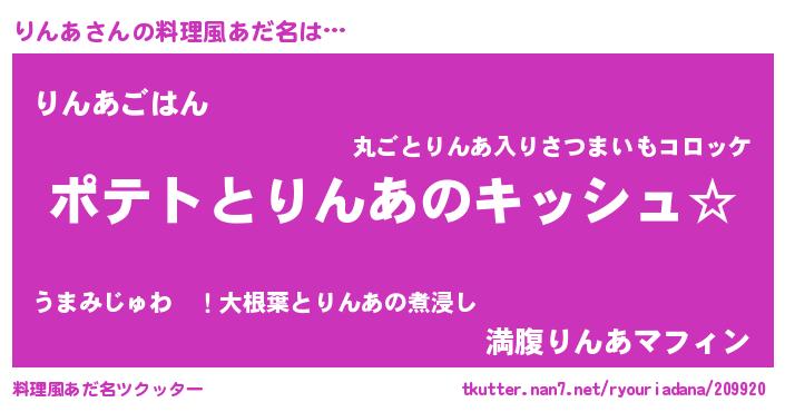 | 男性向けラノベタイトル風あだ名 | 『りんあの嫁は女の子じゃないと思った?』 |
