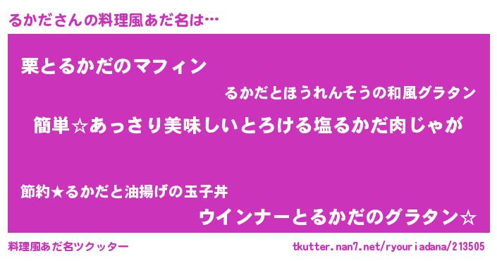 | ヘコむあだ名 | 『るかだ(笑)』『つくし』 |