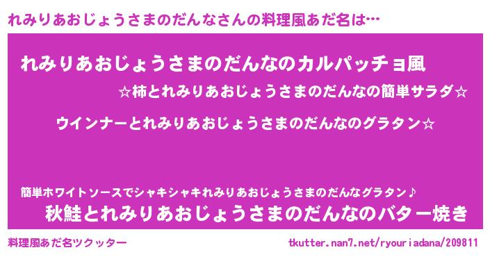 | ファンタジー風あだ名 | 『エターナルレミリアオジョウサマノダンナー』 |