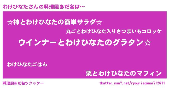 | 意味不明あだ名 | 『わけひなたフォーエバー』 |