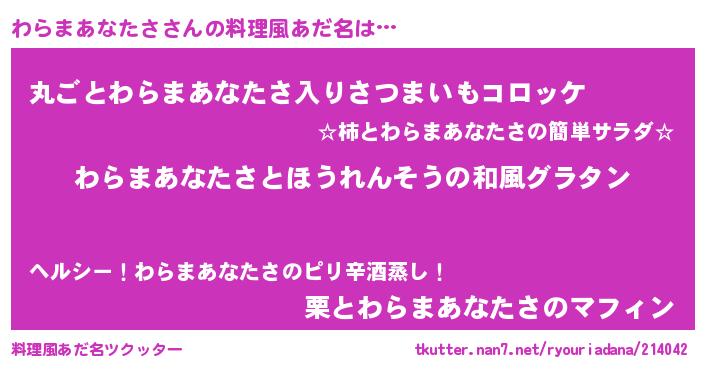 | 女子向けラノベタイトル風あだ名 | 『わらまあなたさの玉の輿計画!』 |