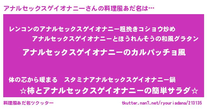 | 欧米人風あだ名 | 『ダレノガレアナルセックスゲイオナニー』 |