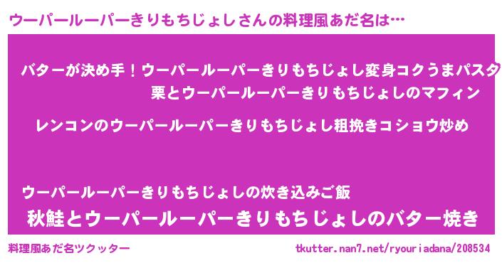 | ヒーロー風カッコイイあだ名 | 『ウルトラ戦士ウーパールーパーキリモチジョシ』 |