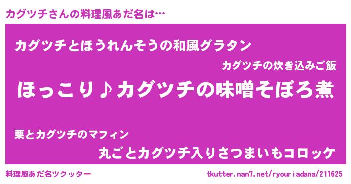 | ヒーロー風カッコイイあだ名 | 『スーパーカグツチ』『仮面カグダー』 |