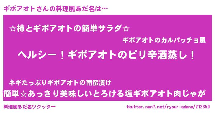 | 男性向けラノベタイトル風あだ名 | 『Re:ギボアオトから始める異世界生活』 |