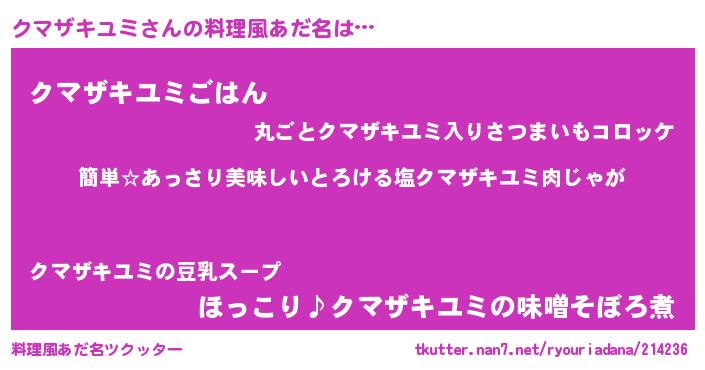 | ファンタジー風あだ名 | 『クマディッシュ』『ユリクマヴァット』 |