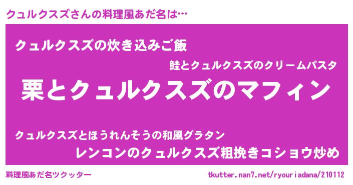 | 男性向けラノベタイトル風あだ名 | 『はたらくクュルクスズさま!』 |