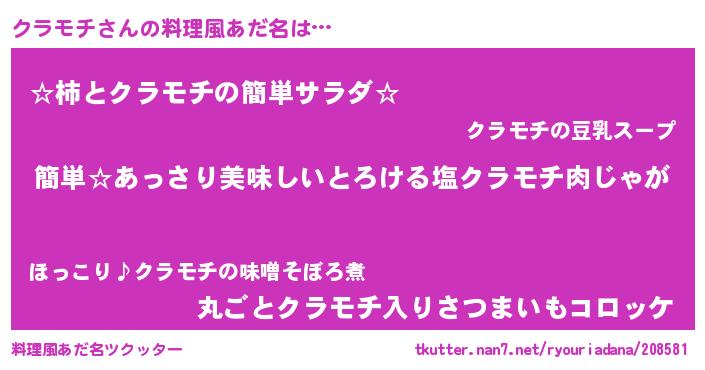 | ピコ太郎風あだ名 | 『ピコク郎』『クラ太郎』『クコ二郎』 |