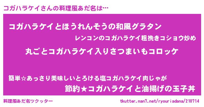 | 意味不明あだ名 | 『住所不定無職コガハラケイ(84歳)』 |