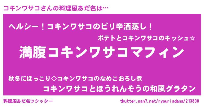 | ヘコむあだ名 | 『コキンワサコ(笑)』『コキ太郎』 |