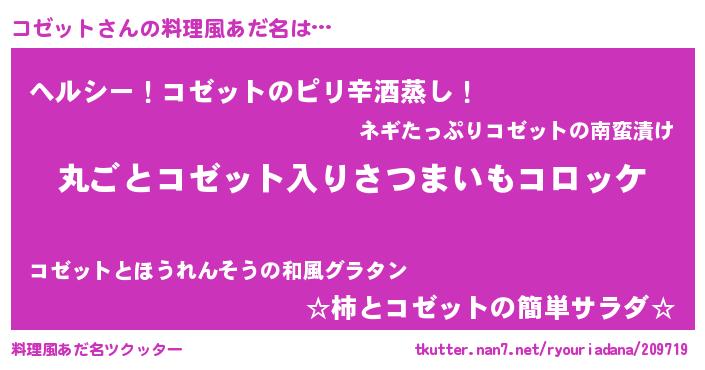 | ヘコむあだ名 | 『コゼっふぃ~』『コゼット(笑)』 |