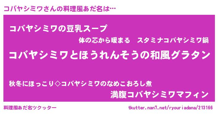 | 胡散臭い通販商品みたいなあだ名 | 『全米が絶賛したサプリメント…その名も「コバヤシミワ」』 |
