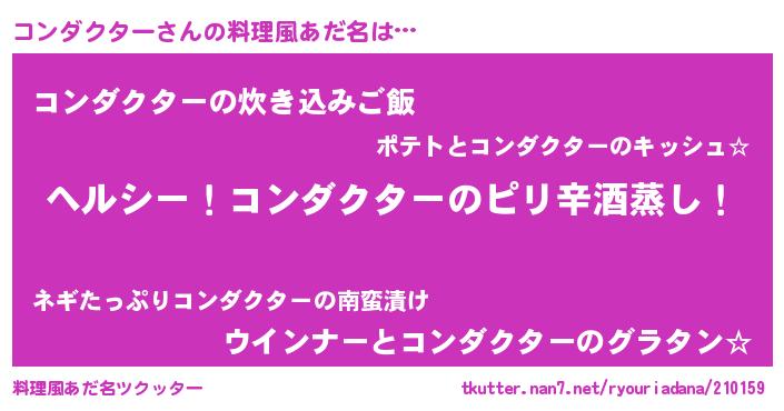| 男性向けラノベタイトル風あだ名 | 『Re:コンダクターから始める異世界生活』 |