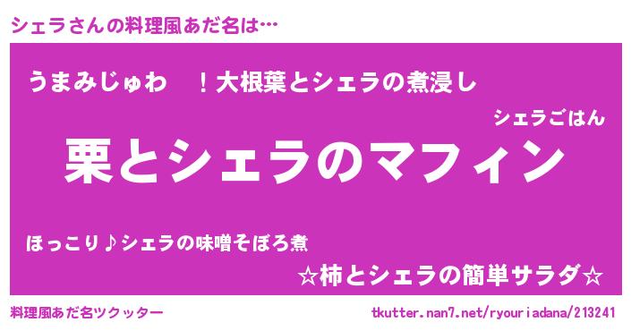 | 男性向けラノベタイトル風あだ名 | 『はたらくシェラさま!』『シェラの憂鬱』 |
