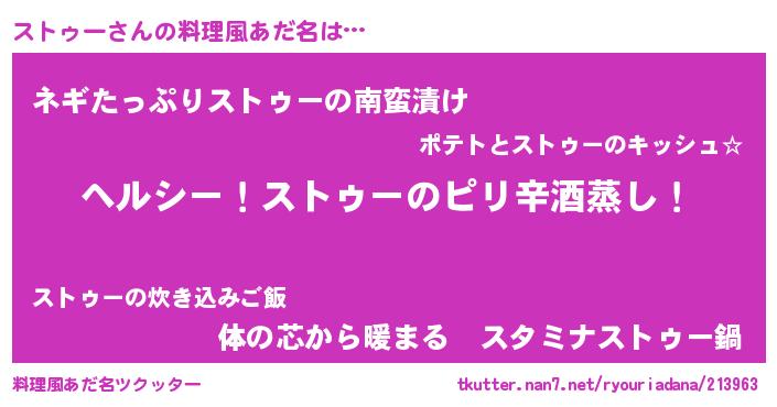 | 意味不明あだ名 | 『自称ストゥー』『ペロリンストゥー』 |