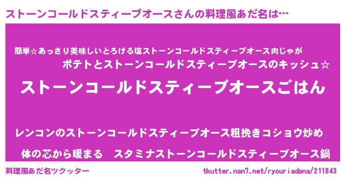 | 男性向けラノベタイトル風あだ名 | 『ストーンコールドスティーブオーススレイヤー』 |