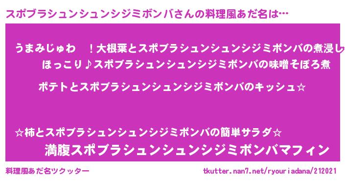 スポブラシュンシュンシジミボンバさんの料理風あだ名をツクッター!