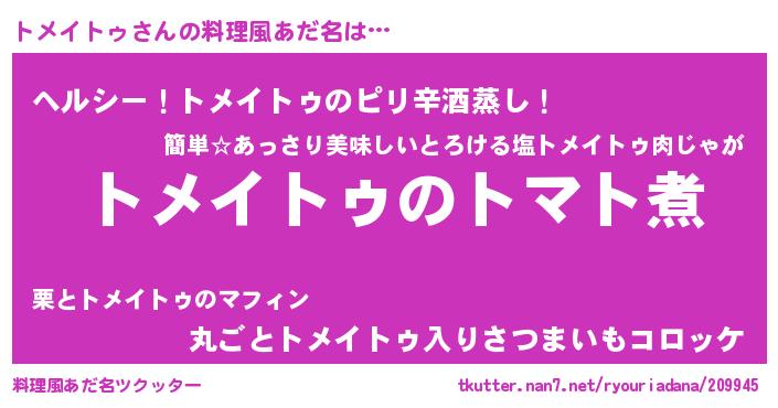 | ヘコむあだ名 | 『トメイトゥ(苦笑)』『なまこ酢』 |
