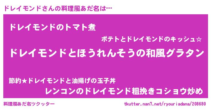| 男性向けラノベタイトル風あだ名 | 『転生したらドレイモンドだった件』 |