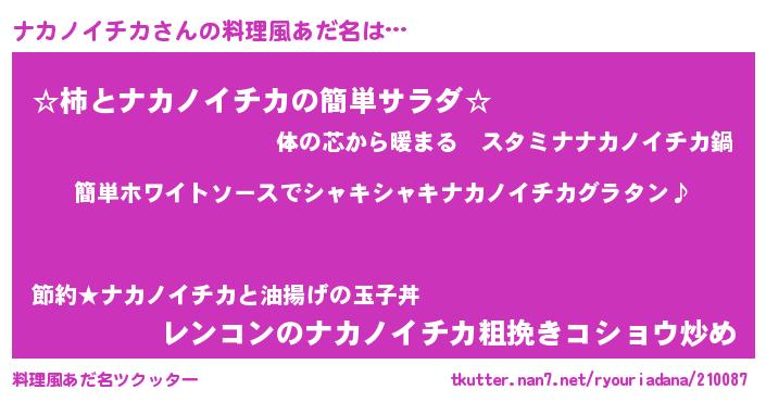 | 男性向けラノベタイトル風あだ名 | 『ナカノイチカの嫁は女の子じゃないと思った?』 |