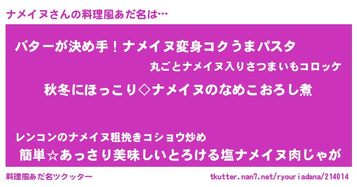 | ヘコむあだ名 | 『ナメイヌ(遠い目)』『ナメっぺ』 |
