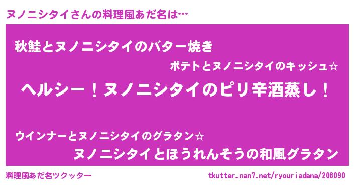 | 男性向けラノベタイトル風あだ名 | 『Re:ヌノニシタイから始める異世界生活』 |