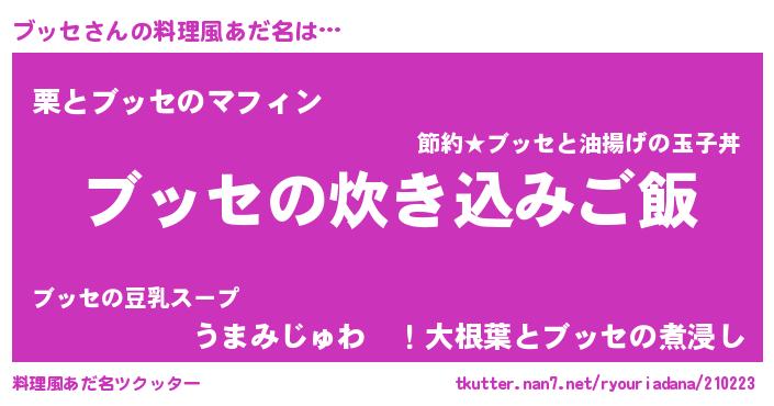 | 男性向けラノベタイトル風あだ名 | 『冴えないブッセの育てかた』 |