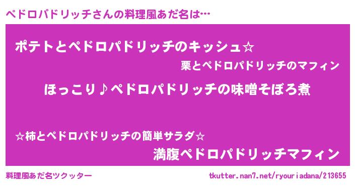 | 男性向けラノベタイトル風あだ名 | 『ペドロパドリッチの憂鬱』 |