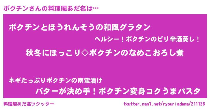 | ヒーロー風カッコイイあだ名 | 『慈愛の使者ボクチン』『仮面ボクダー』 |