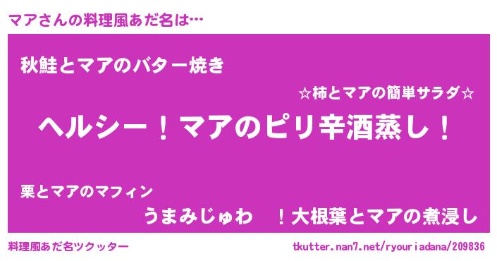 | ヘコむあだ名 | 『マア(苦笑)』『なまこ酢』『マアお』 |