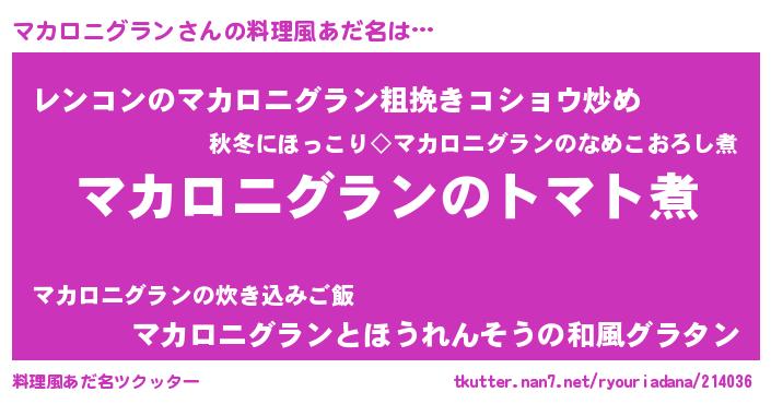 | ヘコむあだ名 | 『マカにー』『マカロニグラン(笑)』 |