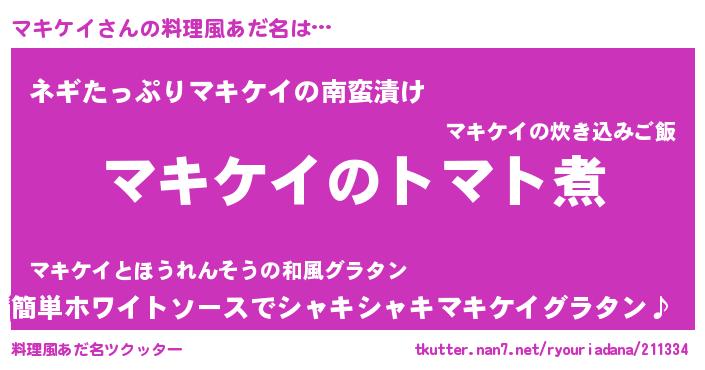 | 男性向けラノベタイトル風あだ名 | 『おまえをオタクにしてやるから、俺をマキケイにしてくれ! 』 |