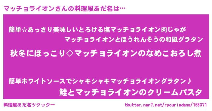 | 意味不明あだ名 | 『永久保存マッチョライオン』 |