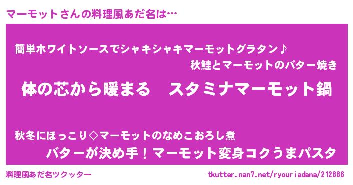 | 男性向けラノベタイトル風あだ名 | 『やはりマーモットの青春ラブコメはまちがっている 』 |