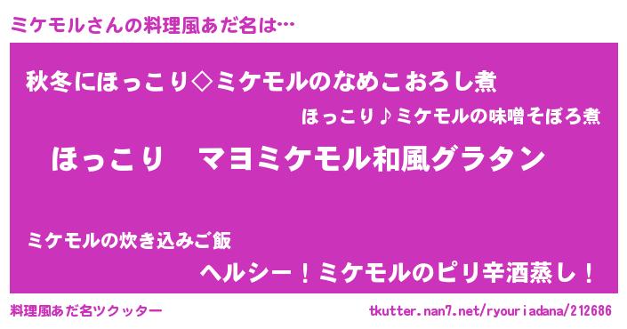 | 意味不明あだ名 | 『住所不定無職ミケモル(40歳)』 |