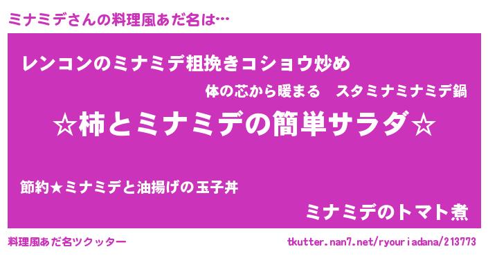 | ヘコむあだ名 | 『豆乳』『ミナふぇ~』『ミナを』 |