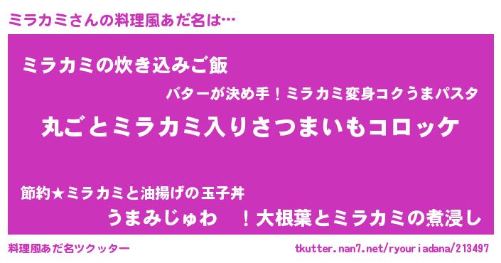 | 意味不明あだ名 | 『住所不定無職ミラカミ(91歳)』 |