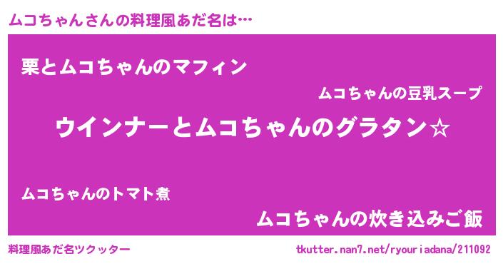 | ヒーロー風カッコイイあだ名 | 『ウルトラムコちゃんマン』 |
