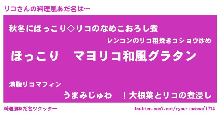 | ヘコむあだ名 | 『酢こんぶ』『リコ(笑)』『リコっぺ』 |