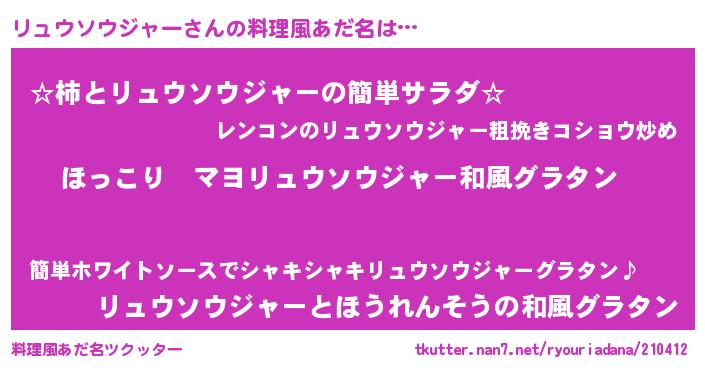 | 意味不明あだ名 | 『住所不定無職リュウソウジャー(3歳)』 |