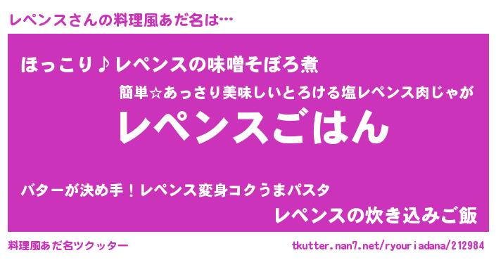 | 男性向けラノベタイトル風あだ名 | 『レペンススレイヤー』『レペンスの憂鬱』 |