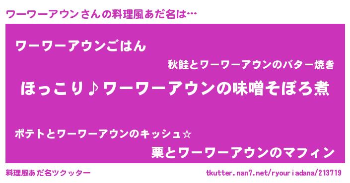 | 男性向けラノベタイトル風あだ名 | 『ワーワーアウンの憂鬱』 |