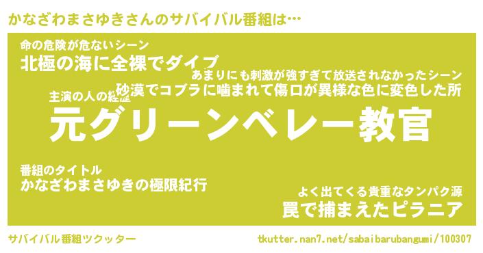 | 番長 | かなざわまさゆき、またの名を・・・!『だいたいかなざわまさゆきっち』 |