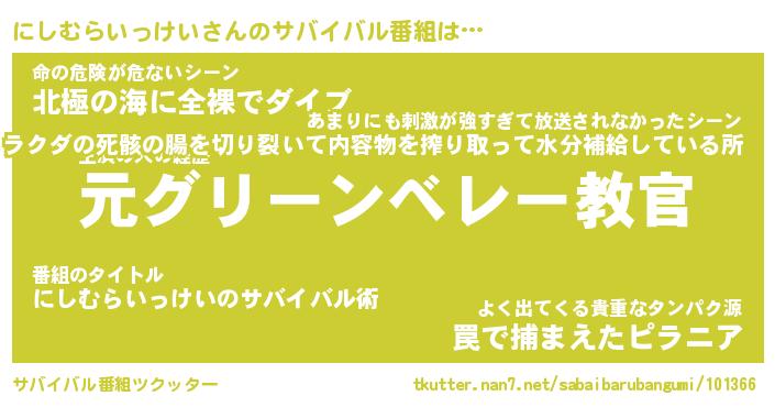 | 胡散臭い通販商品みたいなあだ名 | 『モテモテ間違いなし霊験あらたかなお札…その名も「にしむらいっけい」』 |