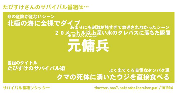 | ヘコむあだ名 | 『たびにゅー』『酢こんぶ』『たびお』 |