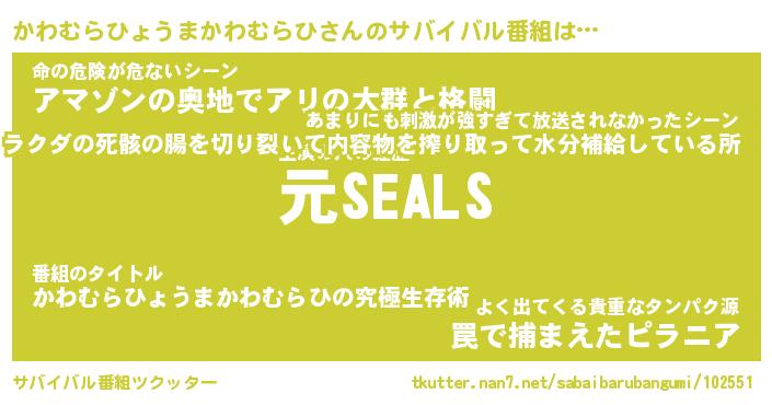 | 伝説のあだ名 | 『封印されしスナイパーかわむらひょうまかわむらひ』 |